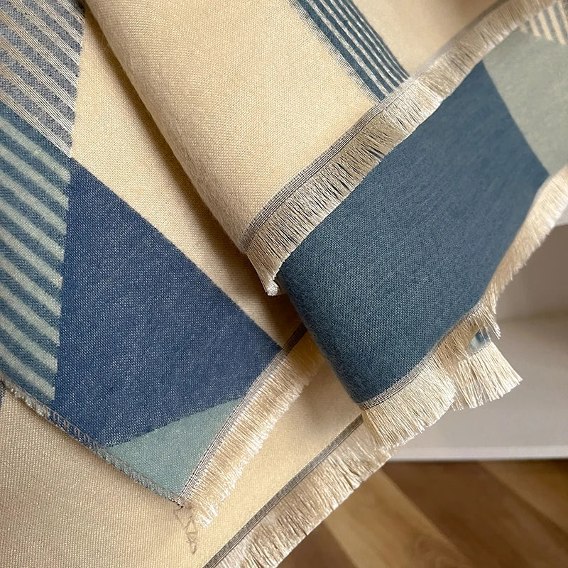 Ce qui distingue particulièrement cette écharpe, c’est son inspiration vintage. Les motifs géométriques soigneusement intégrés au tissage évoquent une esthétique rétro qui traverse les époques sans perdre de sa modernité. Le style vintage est plus qu’une tendance passagère, c’est une véritable signature qui confère au vêtement un caractère unique et une âme intemporelle. Cette écharpe reprend les codes classiques du passé tout en les adaptant aux goûts actuels, créant ainsi un équilibre harmonieux entre tradition et innovation. Portée avec un manteau en laine, une veste longue ou un trench moderne, elle apporte cette touche subtile qui transforme une tenue simple en un ensemble sophistiqué.